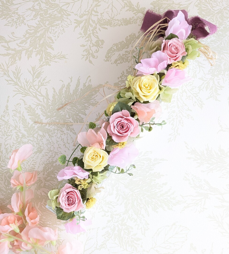 カルチャー:もうすぐ春❁ 2月のカルチャーlessonは、スイトピーとローズのリースです♪